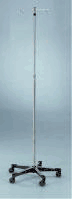 The Blickman Five-Leg IV Stand - Twist Locks feature a stainless-steel post that sits on a 24"-diameter, polished, die-cast aluminum base with Wall Saver end-caps to protect against scuffmarks. Both five-leg IV poles offer a two- or four-hook, interchangeable ram's horn. Stands travel on 2", MRI-Safe, swivel casters.