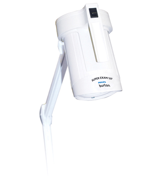Burton's Super Exam 50® delivers best-in-class intensity, color temperature and CRI – all on a highly-positionable K-arm. Delivering higher illumination in a limited area, Super Exam 50® is ideal for obstetrics, gynecology and emergency rooms. Super Exam 50® uses halogen technology for maximum light output and color rendering. A dual lens optical system collects and concentrates the light in a precise beam.