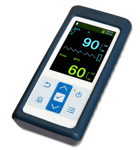 The monitoring system includes a vivid 3-inch color LCD screen, and connectivity to analytic tools and patient management systems. It is compatible with the entire line of Nellcor sensors with OxiMax technology and offers a robust monitoring feature set including SpO₂, pulse rate, SatSeconds alarm management, pleth waveform, blip bar and tabular trend information.